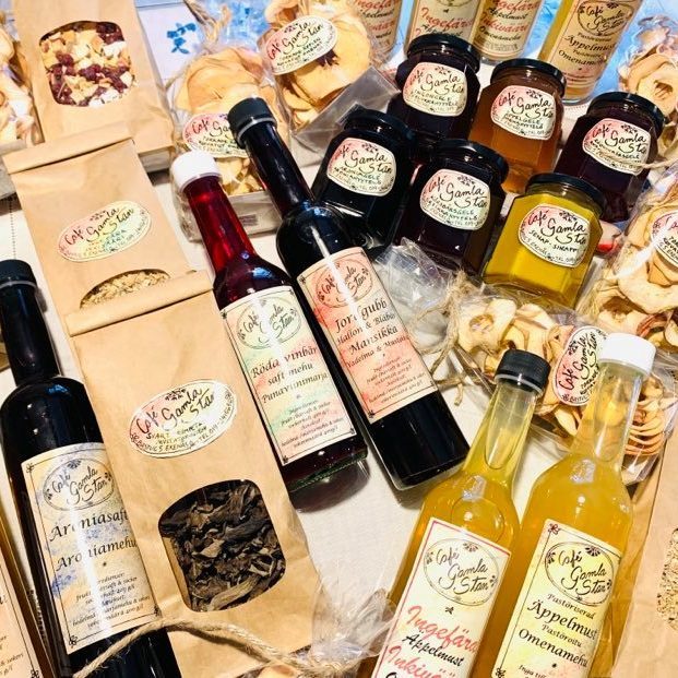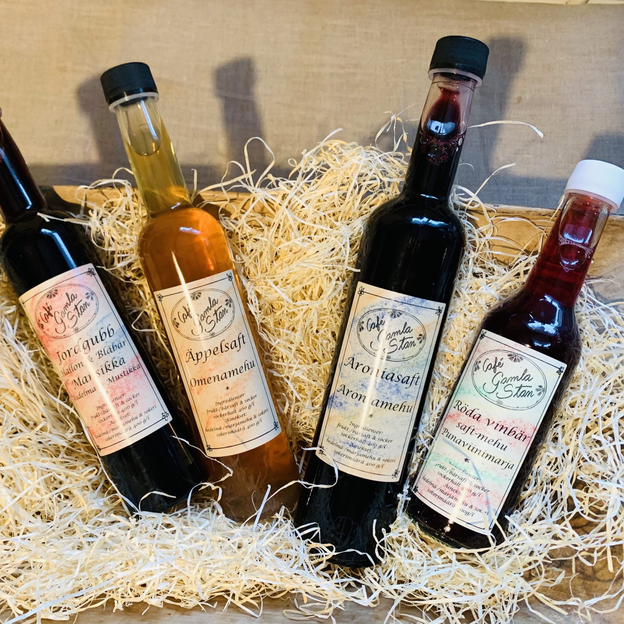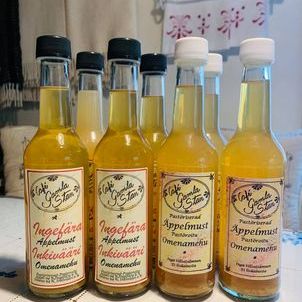 Lena and Bosse make many different juices and jellies from the fruits and later in the Christmas cottage or during the summer season you can buy their delicious products from the Café.