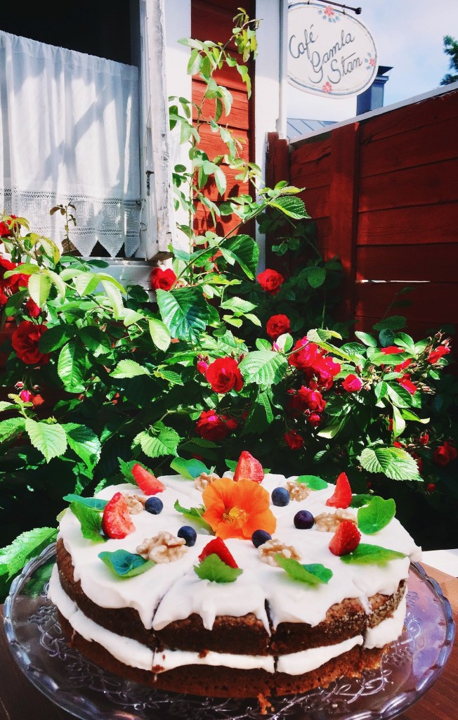 Cafeägarnas dotter Elin som varit med sedan liten i cafeverksamheten är vegankock och har inspirerat oss till vår vegansk meny. Vår mest populära vegansk tårta är morotstårtan som även vunnit hjärtat hos många av våra stamkunder.
